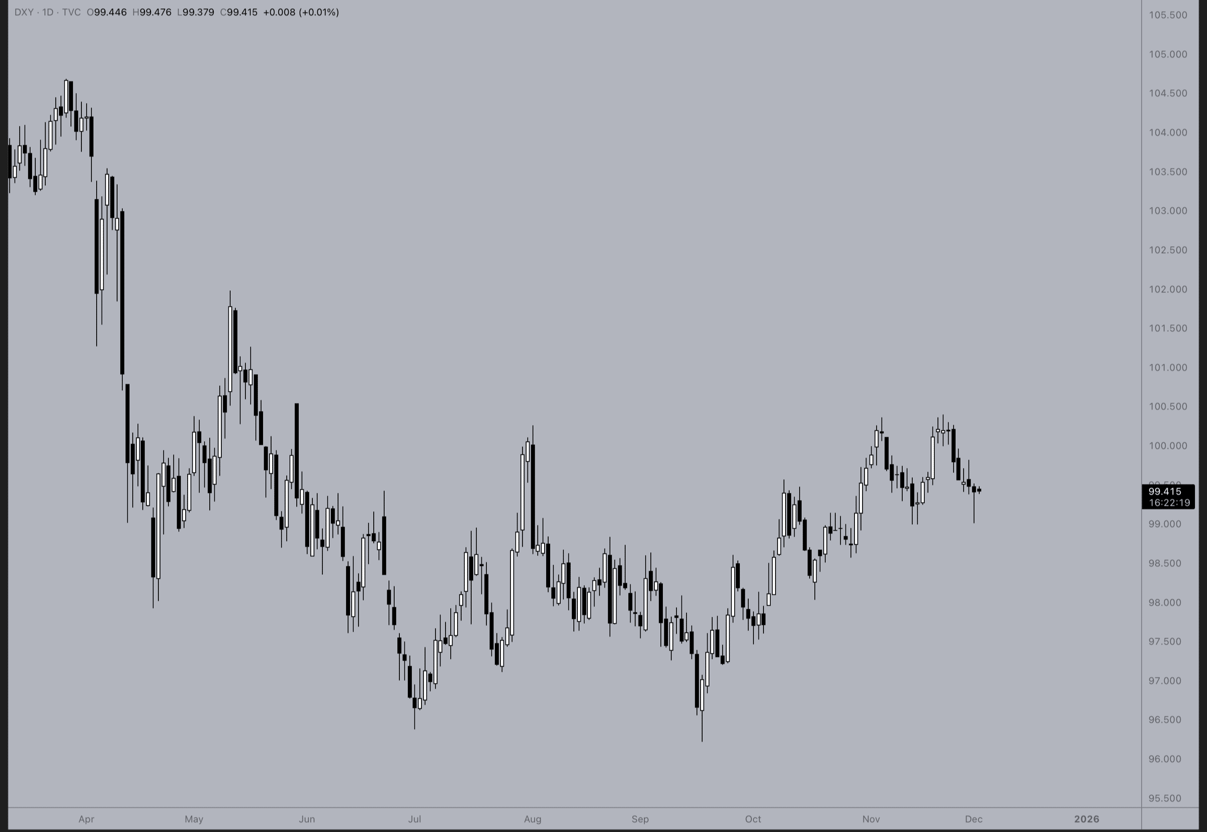 The Dollar Index (DXZ25) last traded at 99.110.